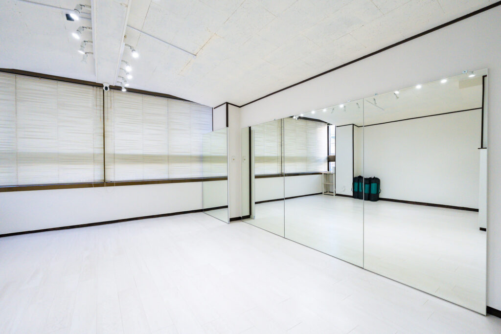 幅5.1m、高さ1.8mの大型鏡、床は全面フローリングで快適にダンスいただける環境に仕上げました。