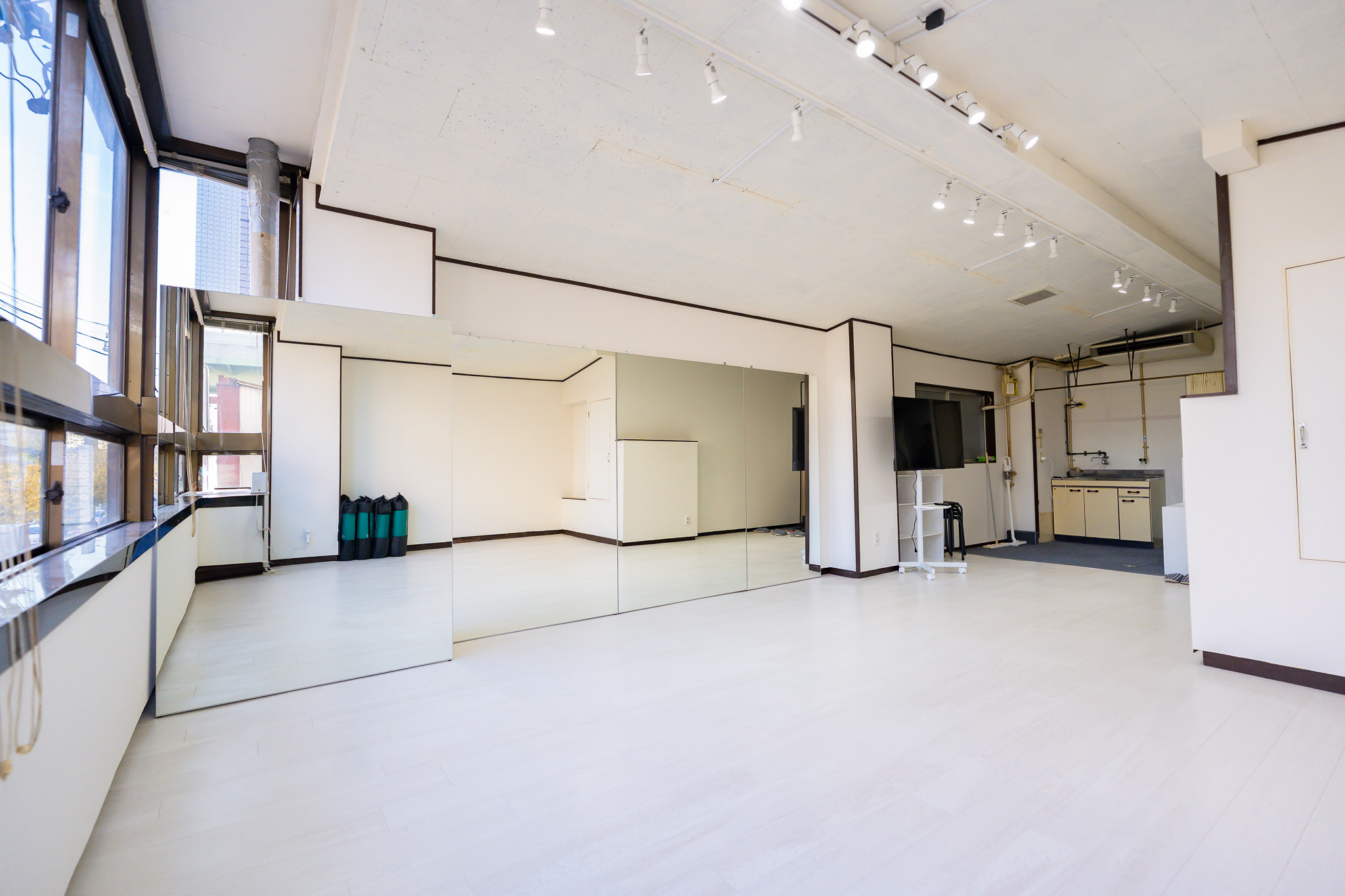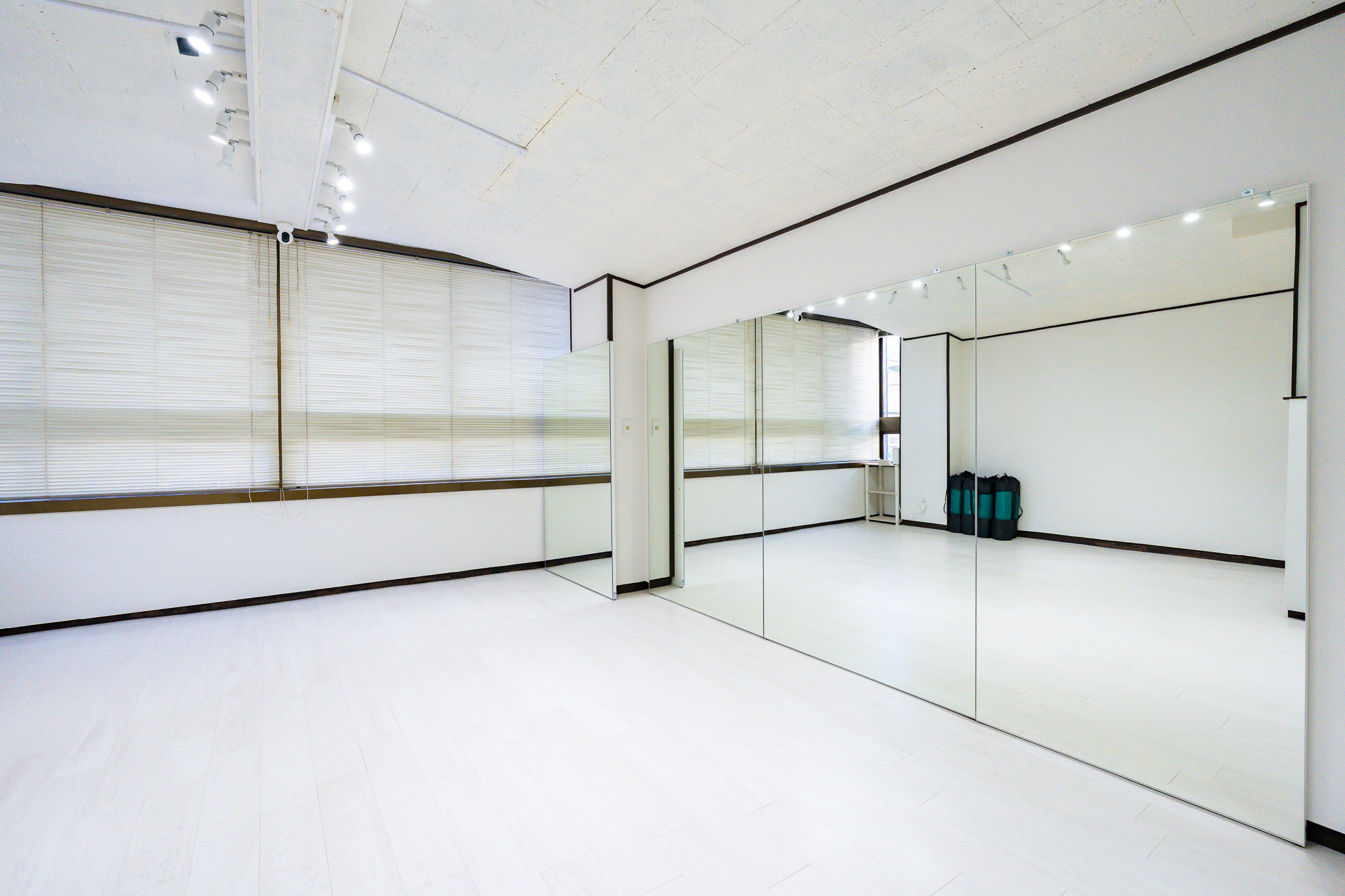 真っ白で明るい40㎡のフロアに、大きな鏡とシンプルな内装。 どんなジャンルも受け止めてくれる“使いやすさ特化”のレンタルスタジオです。撮影・レッスン・SNS用コンテンツづくりにも人気の空間です。