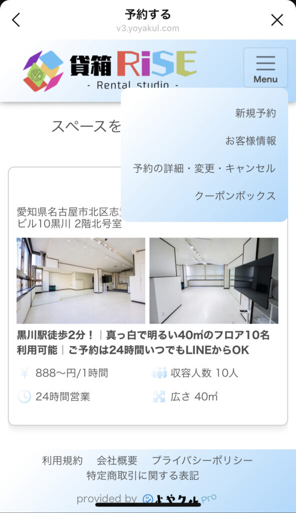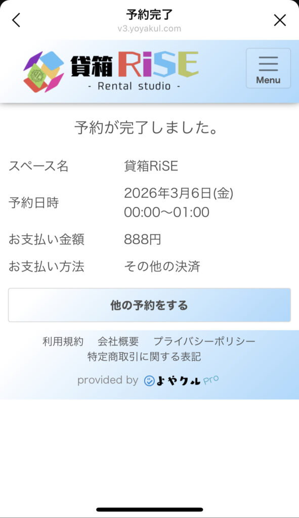 ④予約が完了すると、予約内容・ご利用案内・アクセス・鍵の開け方などの詳細が書かれてるメッセージが届くので、それを確認します。