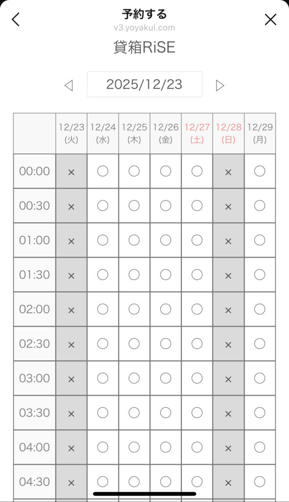 ②予約するスタジオを選び、希望日時に空きがあればその日時を選びます。