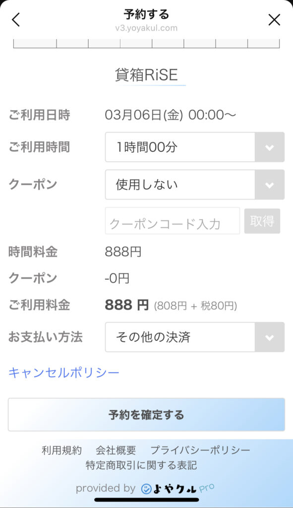 ③お名前・連絡先・クレジット情報を入力し、予約します。